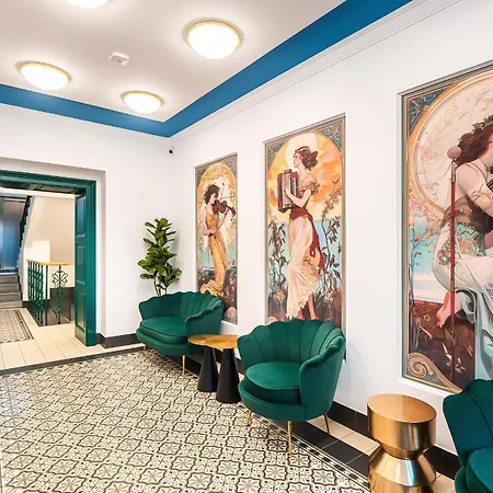 Accordion Boutique Hotel & Premium Suites, umístěný v historické budově, nabízí 16 pokojů s výhledem na dvůr. Nachází se 400 metrů od autobusové zastávky Jana Masaryka a 10 minut chůze od stanice metra Náměstí Míru.